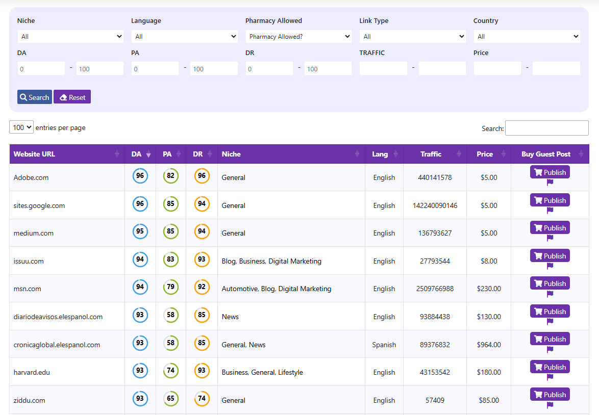 Purchase contextual backlinks and packages directly from our curated list of publishers.